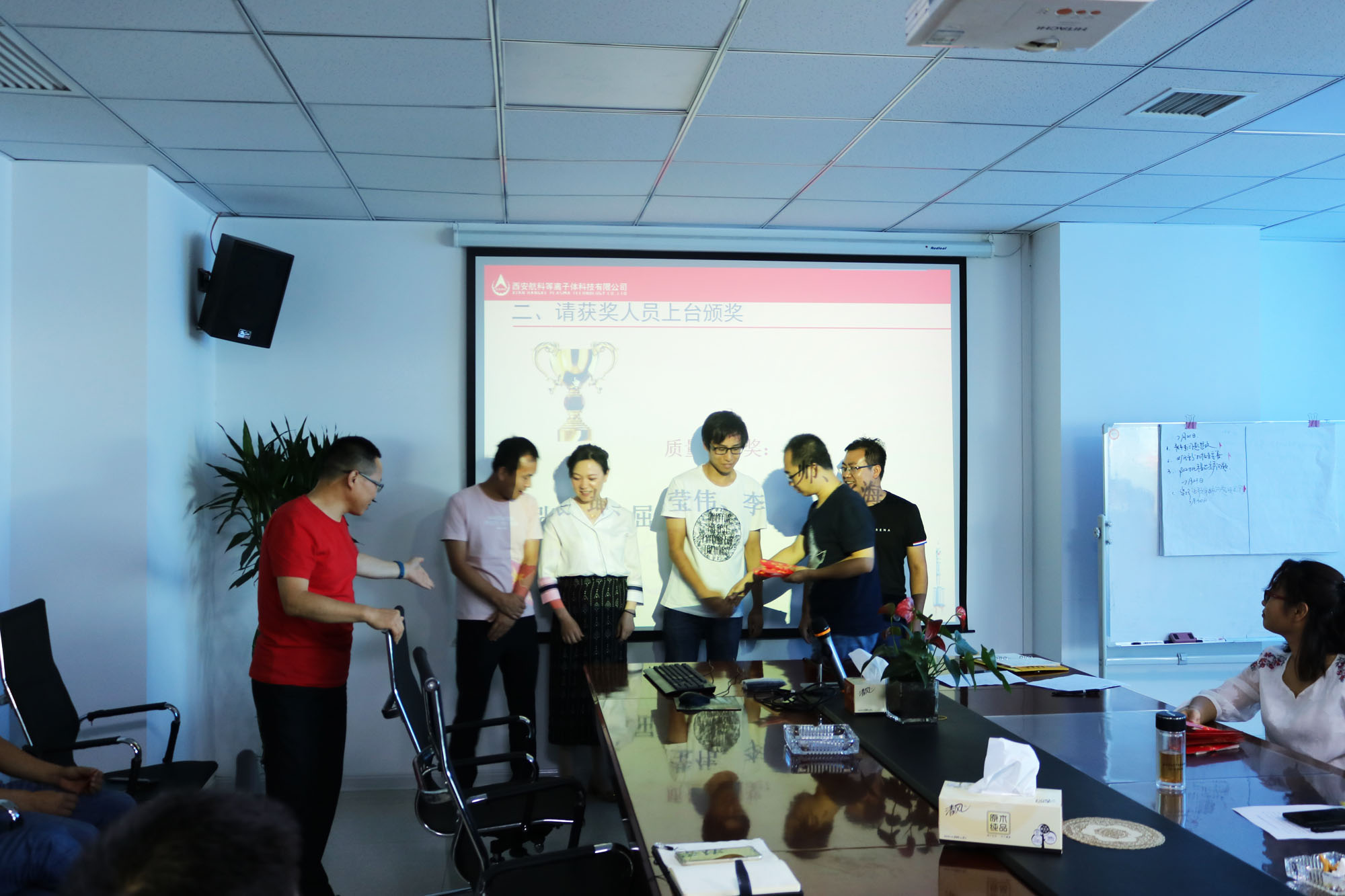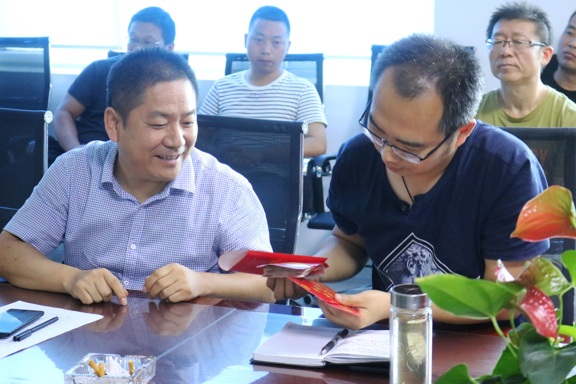 總工程師兼副總經(jīng)理馬俊與楊副總對(duì)獲獎(jiǎng)員工進(jìn)行頒獎(jiǎng)。