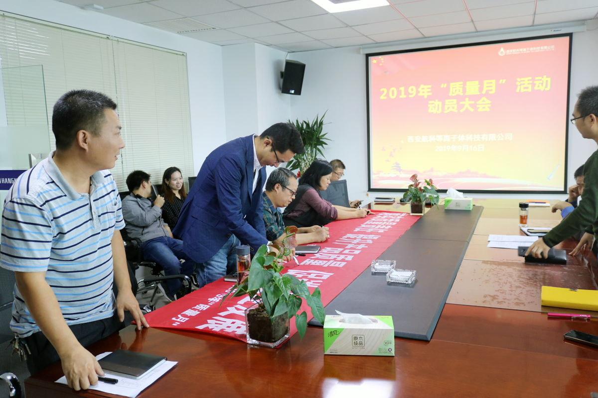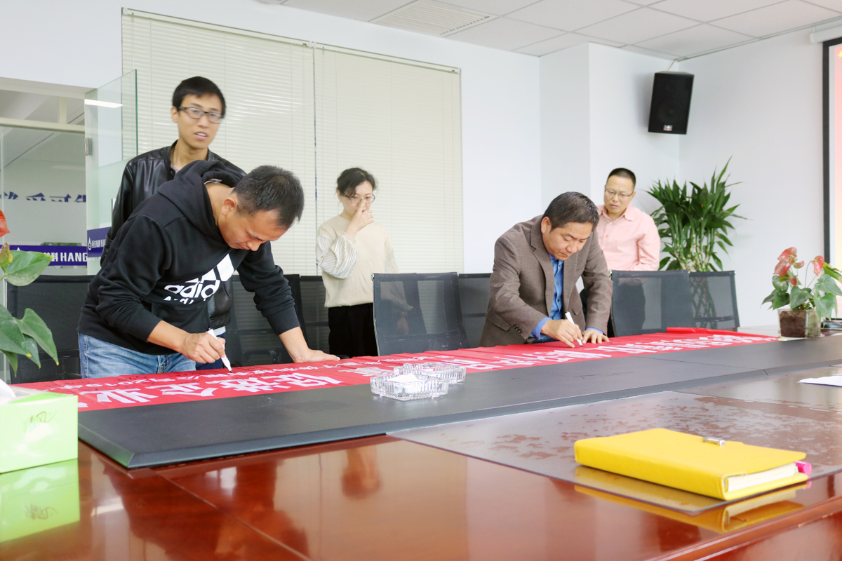 最后全員逐一在 “質(zhì)量月”活動“落實質(zhì)量責(zé)任 提升產(chǎn)品質(zhì)量 促進企業(yè)發(fā)展”的橫幅上鄭重簽字。決心立足崗位,提升質(zhì)量意識,恪守工藝標(biāo)準(zhǔn),以實際行動踐行“以先進科技和裝備做國防的守護者”的承諾。
