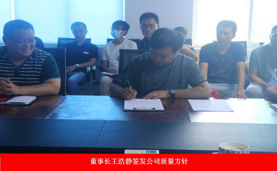 在舒緩的音樂聲中,公司董事長兼總經(jīng)理王浩靜簽署和批準(zhǔn)了公司的質(zhì)量方針,標(biāo)志著質(zhì)量方針正式發(fā)布和實施,意味著西安航科吹響了質(zhì)量管理的號角,公司的質(zhì)量管理邁入了新時代。在副總經(jīng)理兼管理者代表楊利鋒帶領(lǐng)全體員工向董事長兼總經(jīng)理王浩靜承諾:“我承諾,在日常工作中,我將堅持踐行、貫徹和落實公司的質(zhì)量方針,讓領(lǐng)導(dǎo)放心,讓客戶滿意!”,在鏗鏘有力的音樂聲中,全體員工在宣誓板簽下了自己的承諾,表示在日常工作中將嚴(yán)格遵守公司的質(zhì)量方針,為公司質(zhì)量發(fā)展貢獻(xiàn)自己的一份力量。