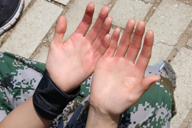 要論刺激,應(yīng)該提一提項(xiàng)目“生命動(dòng)力圈”,所有人坐在地上,圍成一個(gè)圈,后仰繃緊拉住繩子,在有限的10分鐘時(shí)間內(nèi)讓繩子轉(zhuǎn)動(dòng)1000圈。我們做到了!10分鐘1098圈,這是怎樣的耐力,有的戰(zhàn)友手上磨出了小泡,有的滿頭大汗直接躺到地上,但是過(guò)程無(wú)論怎樣艱難,我們依然堅(jiān)持不懈,不達(dá)目的誓不罷休!